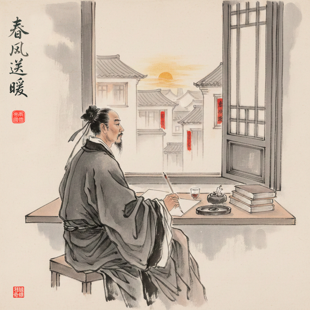 пост канцлера при императоре Шэнь-цзуне (Северная Сун, 1067–1085). Ирония в том, что человек, писавший такие тёплые стихи про новогоднее солнце над дворами, в политике был жёстким реформатором. Его идеи вызывали яростные споры: консерваторы ненавидели его, император поддерживал, а простые люди порой страдали от слишком резких перемен. Но именно в эту ночь чуси (除夕 – канун Нового года), глядя на смену старых
