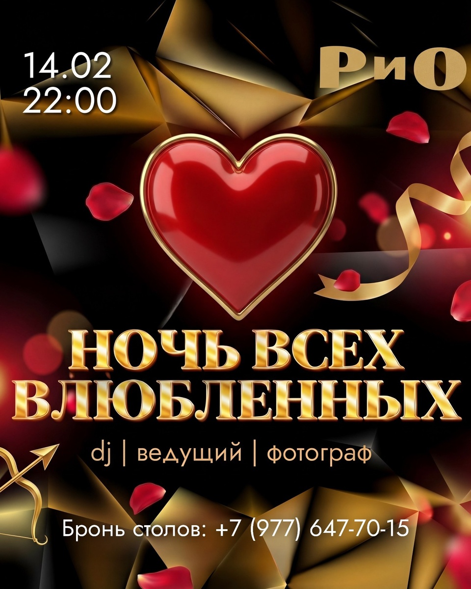 🥘 НОЧЬ ВСЕХ ВЛЮБЛЕННЫХ В РИО! 14 февраля - ночь, когда чувства выходят на танцпол. Музыка громче, взгляды ближе, эмоции ярче. Запоминаем и ничего больше не планируем 👇 14 февраля Сбор гостей: 22:00 Все выходные девушкам бесплатный вход до 00:00! 💋 РОЗЫГРЫШ ПОДАРКОВ ДЛЯ ВЛЮБЛЕННЫХ 💝 🍹 Приятный бонус: каждому гостю коктейль в подарок за отметку в сторис! Не упустите возможность провести самый романтичный вечер в РИО. Бронь столов: riopodolsk.ru 📶 Категория: Ресторан 🏢 Место: Ресторан "РИО Гранд" 📍Адрес: г. Подольск, Большая Серпуховская ул., 23 ⏱ Часы работы: Вс-Чт: 12:00 - 01:00 Пт-Сб: 12:00 - 05:00 ✅ Где поесть, Подольск!? https://dzen.ru/id/6756016c107ef731969e16a5 https://vk.com/gde_poest_podolsk https://dzen.ru/gde_poest_v_podolske