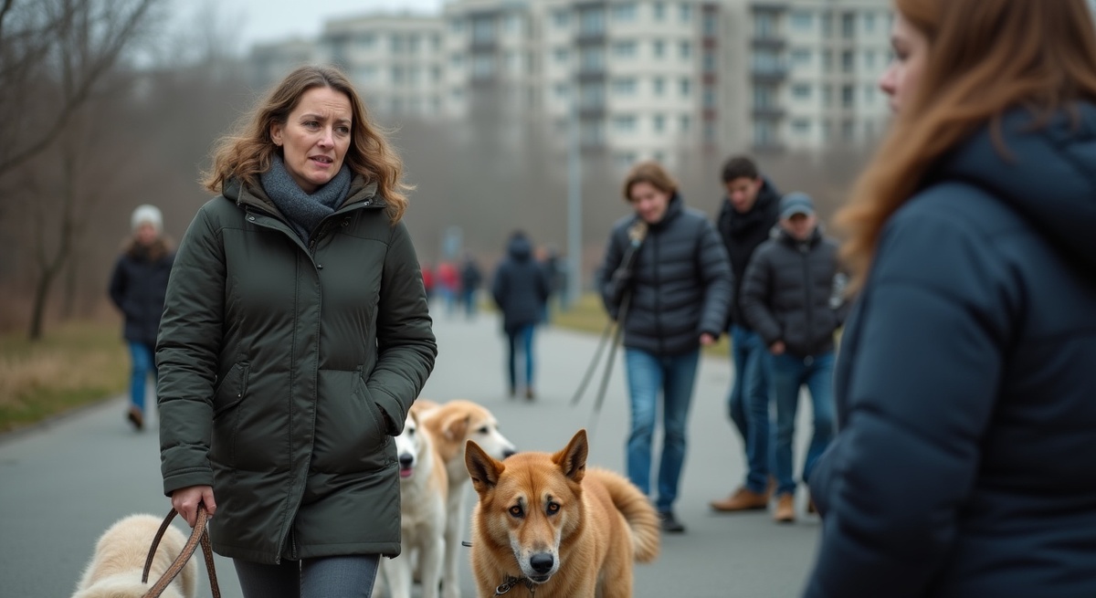 «Да вы шутите? Теперь за каждую прогулку с моими псами я должна платить как за парковку машины? Это же абсурд!» — кричит женщина в ярко‑красной куртке, обнимая за ошейники двух дворняг, дрожащих от февральского ветра и, кажется, от людской суеты вокруг.