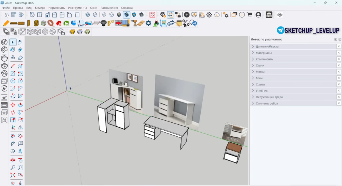 Если вы открыли SketchUp впервые и сразу начали «что-то рисовать» — почти наверняка вы уже сделали первую ошибку. И это нормально. Так делают… примерно 99% новичков. Меня зовут Максим, я обучаю работе в SketchUp, и чаще всего люди бросают программу не потому, что она сложная. А потому что начинают неправильно, получают кривую модель, злятся, устают и решают, что «это не моё». На самом деле проблема не в вас. Проблема в старте. Давайте разберёмся, какие ошибки делают почти все новички и как их избежать. ❌ Ошибка №1. Начали моделировать — не проверили единицы измерения Открыли SketchUp и сразу рисуем стол, шкаф, кухню. А потом внезапно: • стол высотой почти метр • тумба «детская», но в неё не сядешь • размеры не совпадают с референсом Почему? Потому что программа стоит не в миллиметрах. - Как этого избежать? Окно → Данные модели → Единицы → миллиметры. ❌ Ошибка №2. Работа «на ощущениях», а не по габаритам Новичок смотрит на референс и все рассчитывает приблизительно. И делает: • слишком