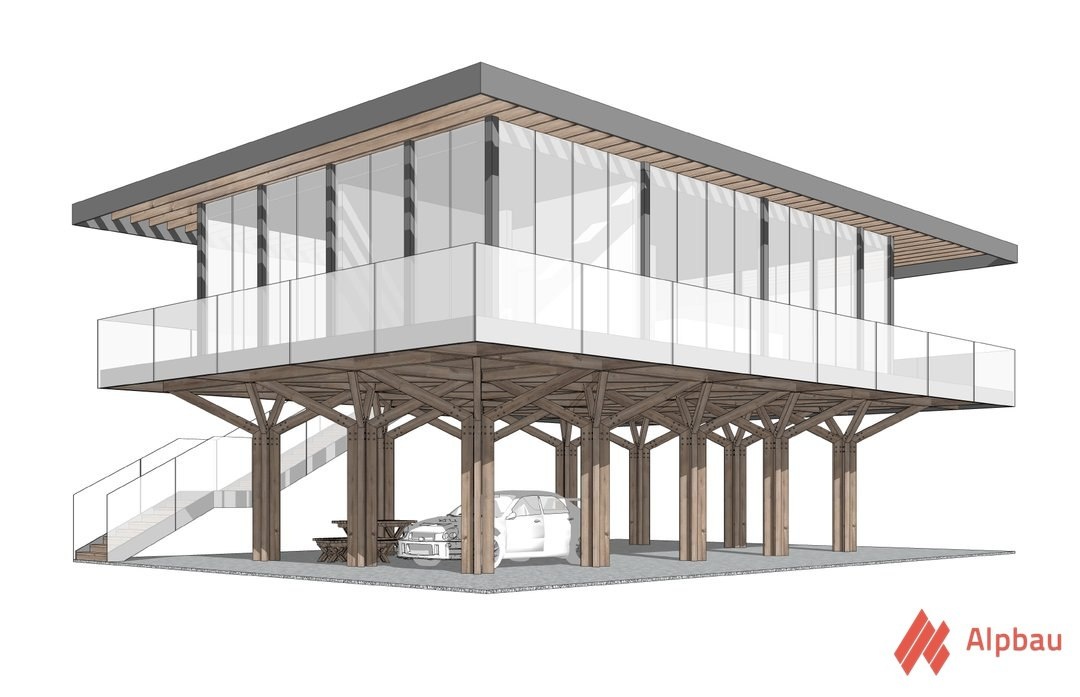 Четыре формата. Модульные дома Alpbau для эко-поселка в Завидово Завидово - это живописное заповедное место на границе Тверской и Московской областей. Перед нами стояла задача разработать для этой локации несколько видов домов в современном стиле, которые органично впишутся в природный ландшафт. На этапе проектирования мы решили использовать принцип модульности, который часто применяем в наших проектах. Мы создали линейку домов как своеобразный конструктор, который состоит из основного и второстепенных блоков, фасадов и навесов. Таким образом было спроектировано 4 типа домов одной стилистики, но разного наполнения: 1️⃣ Деревянный каркас-навес с возможностью остекления или использованием эксплуатируемой кровли; 2️⃣ Одноэтажный коттедж в пяти фасадных решениях; 3️⃣ Двухэтажный коттедж в двух решениях; 4️⃣ Кафе-бар – двухэтажная конструкция с навесом на втором этаже и помещением на первом. Благодаря этому решению, весь поселок выполнен в одном архитектурном стиле, закрывает все