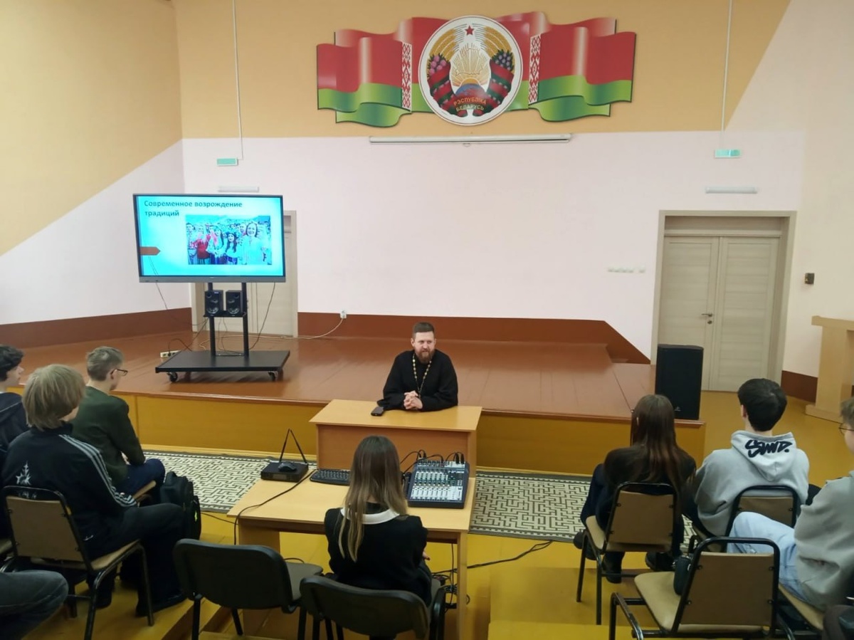 Сергия Чуковича с учащимися ГУО «Жодинский политехнический колледж». Темой разговора стало сохранение традиций белорусского народа и духовно-нравственное воспитание молодежи. Обращаясь к студентам, отец Сергий, подчеркнул неразрывную связь профессионального становления и личностного роста. «Сегодня вы осваиваете сложные технические специальности, без которых невозможно развитие нашего государства. Но настоящим профессионалом и гражданином человека делает не только диплом, но и внутренний стержень, сформированный на основе традиционных ценностей и уважения к истории своего народа», — отметил священник. В ходе живой беседы обсуждались вопросы важности сохранения исторической памяти, роли семьи и веры в жизни современного человека. Учащиеся активно задавали вопросы: разговор коснулся как глобальных тем, так и конкретных жизненных ситуаций. Подробности