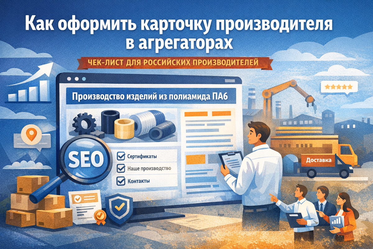 Карточка компании в отраслевом каталоге — это не формальность и не «визитка для галочки». Это страница, по которой закупщик за 30–60 секунд принимает решение: отправлять запрос или закрывать вкладку. Поэтому в карточке важно не количество текста, а его точность. Есть три вопроса, на которые карточка должна отвечать сразу: что именно вы производите, почему вам можно доверять и на каких условиях вы работаете. Во многих каталогах есть короткое поле по типу «слоган» или «краткое описание». Часто именно эта строка попадает в заголовок страницы (H1 или Title) и влияет на то, по каким запросам карточка будет находиться в поиске. Поэтому в слогане нужно писать не общие фразы («качественная продукция», «надёжный партнёр»), а приоритетную товарную группу или конкретный вид продукции, который для вас ключевой. Правильная логика: если направлений много — в слоган ставится одно главное, то, что приносит основной объём заказов. Рабочая формула: