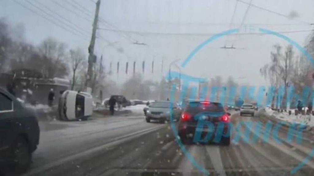 В Брянске днем возле «Вкусно - и точка» легковушка завалилась на бок