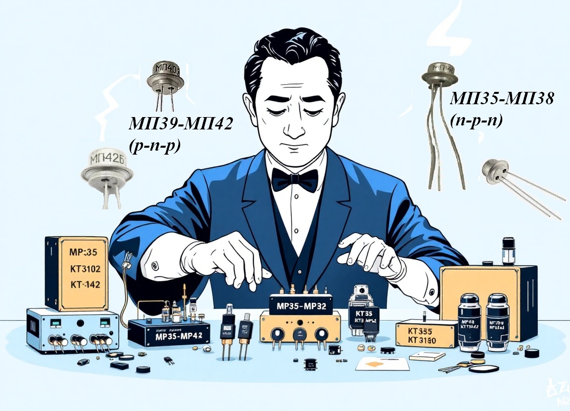 В этой статье мы разберемся, как вместо германиевых МП35-МП38 и МП39-МП42 подобрать подходящие кремниевые транзисторы и какие особенности следует учесть при замене в различных типах схем.