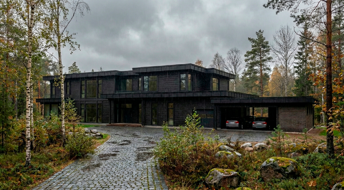 Ориентация дома определяется не по стандартным сторонам света, а с учётом траектории движения солнца над конкретным участком и предпочтений владельца: например, желаемого вида из кухни или необходимости изолироваться от городского шума. Выбор материалов тоже основывается не на модных тенденциях, а на личных ощущениях: ценится тёплое дерево с естественным узором сучков, шероховатый камень, который сохраняет прохладу, бетон с видимым следом опалубки.