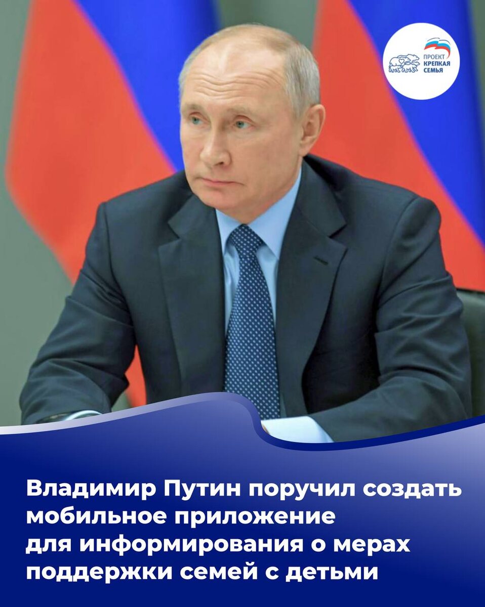 ⚡️Владимир Путин поручил создать мобильное приложение для информирования о мерах поддержки семей с детьми