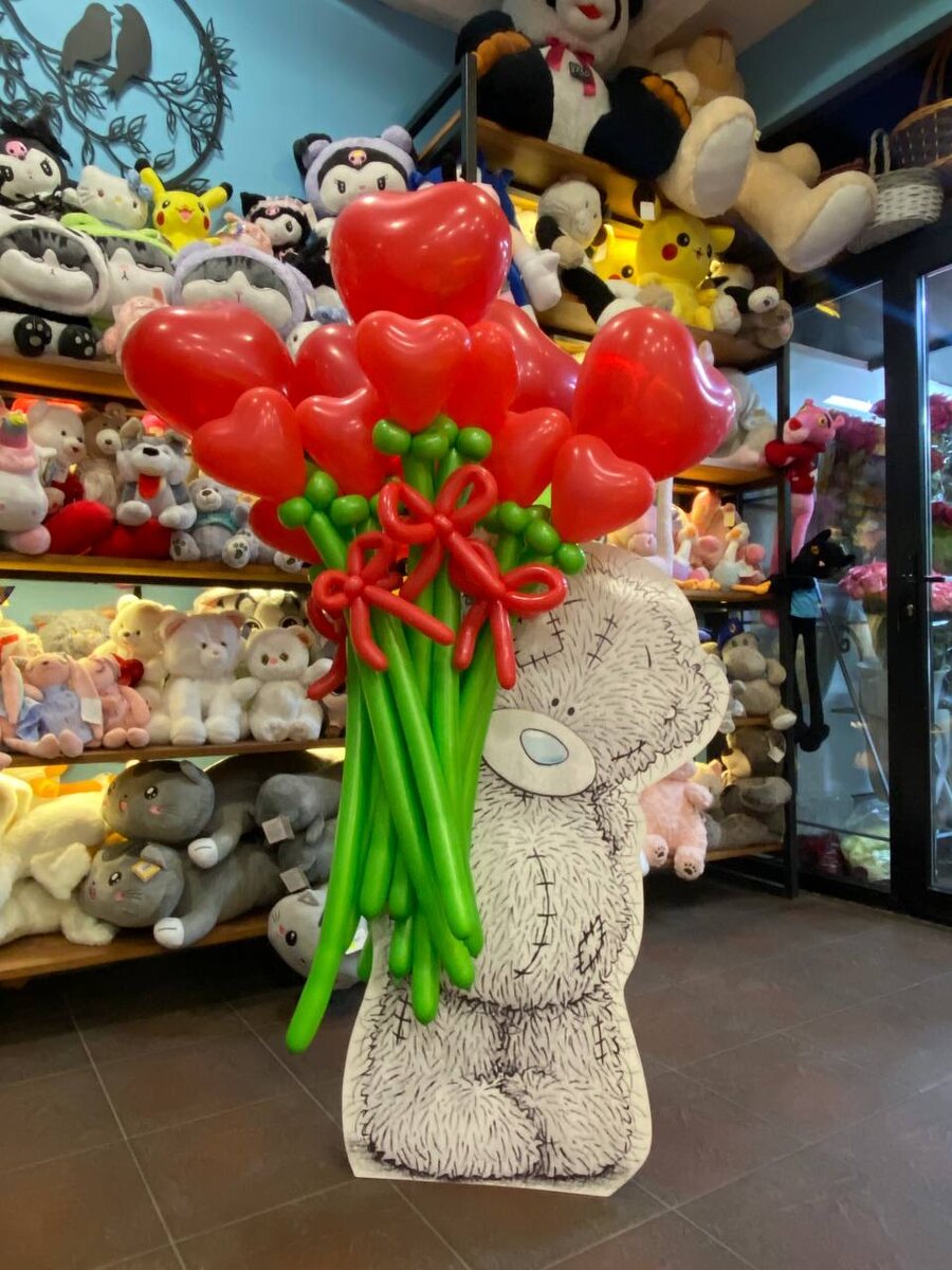 А тут решила ( чтобы не скучал ) в канун праздников, пусть поторгует букетами из шаров в цветочных магазинах 😁