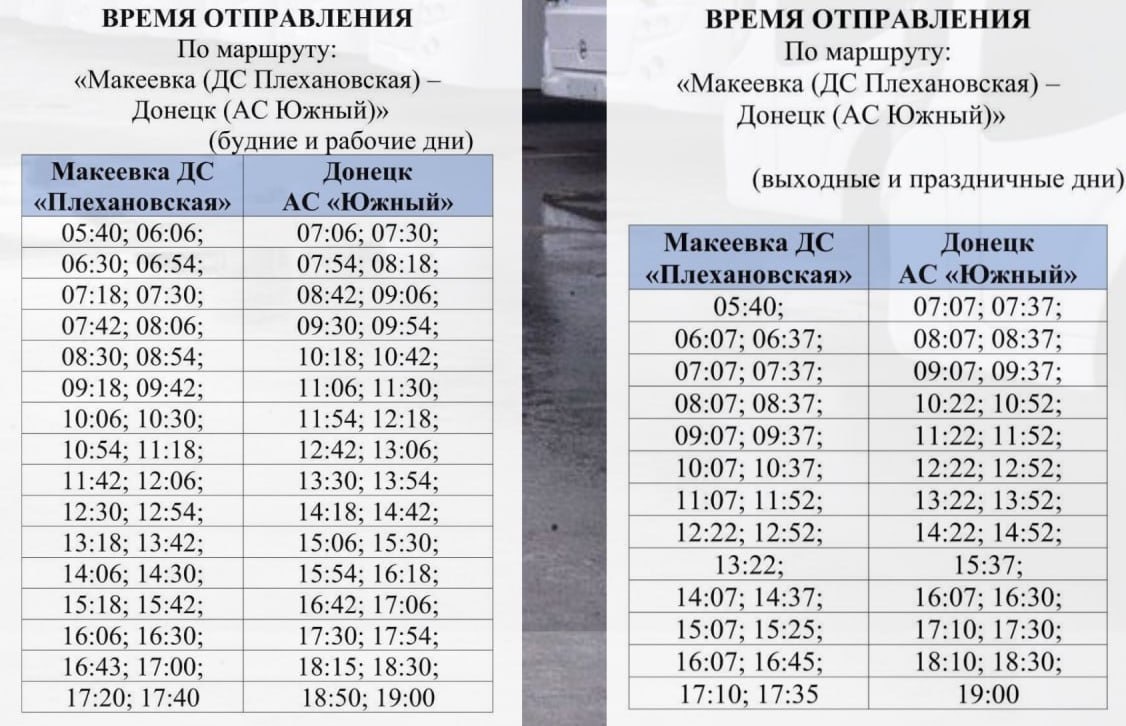 С 16 февраля вносятся изменения в график движения маршрута "Макеевка (ДС "Плехановская") – Донецк (АВ "Южный")"