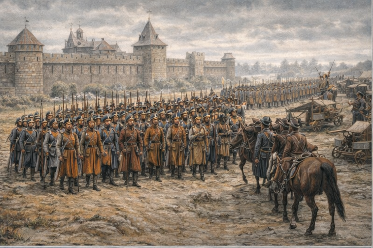 Вступление К 1654 году военная реформа достигла точки, когда её можно было проверить в крупной войне. Русско-польский конфликт стал не просто продолжением борьбы за Смоленск — это была проверка всей системы полков нового строя. Теперь армия выходила на поле боя не как эксперимент, а как организованная структура с регулярной пехотой, рейтарами и артиллерией. Политическая обстановка В 1654 году Россия вступает в войну с Речью Посполитой в условиях серьёзных изменений в Восточной Европе. После событий на Украине и обращения Богдана Хмельницкого к Москве конфликт становится неизбежным. Но если в 1632 году Россия начинала войну с армией переходного типа, то теперь государство имело значительно более подготовленные силы. Состав армии 1654 года К началу кампании в войске присутствовали: • многочисленные солдатские полки, • рейтарская кавалерия, • драгунские части, • артиллерия усиленного состава, • старая поместная конница и стрелецкие формирования. Ядром наступательных операций стали им