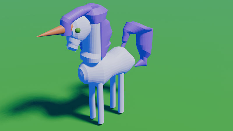 Трёхмерная сцена на сегодня на тему единорожика. У него сегодня день рождения. Он веселый и добрый. Как маленькая пони только с рожиком. И красивая фиолетовая грива. Он прыгает по травке. Он живет в солнечном краю. Там всегда лето. И вот сегодня у него целый день рождения. К нему в гости идут все зверушки из соседних миров. Это крот. Кролик, зайчик, медвежонок, утка, утконос и другие друзья. Всех и не перечислить. Они будут весь день бегать. Мир единорожкиа. Это небо и поле. Он пони. Поэтому любит бегать. И прыгать. И ему надо много места. Ту всегда хорошая солнечная погода. И абсолютно чистое небо. Травка маленькая маленькая. Сегодня к нему еще приплывет по небу солнышко. И улыбнется ему. Подмигнет. Раз такой день. День рождения. Все зверята будут играть. В приставку денди. В веселые желтые картриджи. У единорожика большой домик. И много маленьких домиков с краю. Там куча картриджей. Веселых и желтых навалено. Единорог их собирает. И зверята как раз уже идут к нему. С его любимым пода