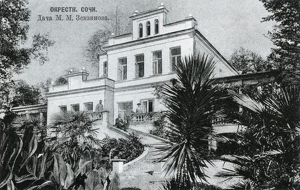 До строительства в 1937 году дачи Сталина по проекту архитектора Мирона Мержанова, вождь всех народов, любивший отдыхать в Сочи, останавливался в имении «Михайловское» Марии Зензиновой. Одной из причин было то, что дача имела весьма удобное расположение: она не находилась непосредственно на побережье. Сталин почему-то избегал морских купаний. Семейное гнездо Территория дачи, которую облюбовал вождь, заросшая великолепным дендропарком, находилась рядом с Мацестинским источником и в то же время за городской чертой. Здание дачи не имело никаких архитектурных изысков, зато было удобным. Михаил Михайлович Зензинов и его жена, Мария Алексеевна Зензинова (Корякина) родом были оба из Сибири, из Нерчинска. Фамилию Зензиновых хорошо там знали и помнили, существовала даже улица «Зензиновская». Удивительно, но Михаил Михайлович не получил никакого образования, он не учился даже в начальной школе. Но необразованным его никак нельзя было назвать. Он добился всего своим собственным упорным трудом, мн