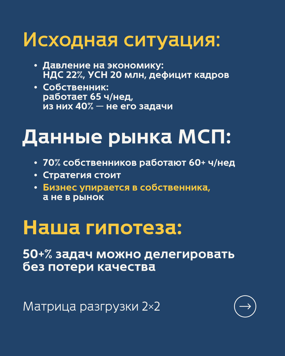 Матрица 2×2: делегируй, убирай, автоматизируй.