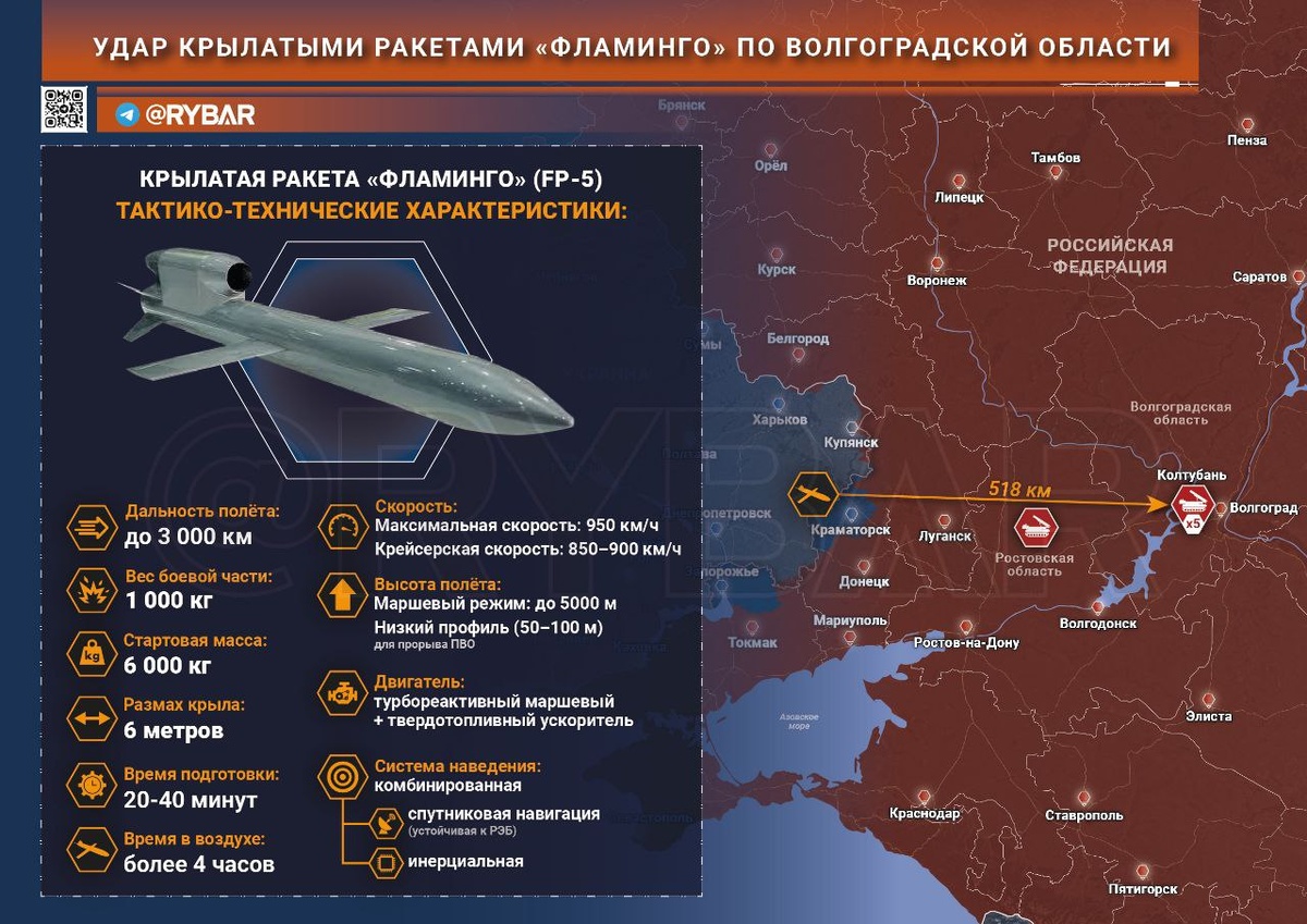 Крылатые ракеты «Фламинго», о которых на т.н.Украине начали говорить ещё летом прошлого года, лишь в феврале 2026 года попали в сводки МО РФ: ВСУ атаковали ими Волгоградскую область. 🔸Шесть ракет было выпущено с направления Днепропетровской области в сторону села Колтубань. Одна была сбита ещё над Ростовской областью, а другие пять — уже над Волгоградской. 🔸Самый главный вопрос: а почему так много времени прошло с момента угроз и факта применения? И ответ довольно прост: собрать ракету с такой дальностью — технологически сложно. 🔸Хотя пиарить «свою» разработку на т.н.Украине начали сразу же после анонса ее существования. Даже говорили, что использовали ее для атаки по Крыму, но реальных фактов так и не нашлось. 🔸В начале февраля были опубликованы кадры с вроде бы пуском «Фламинго» по полигону Капустин Яр. По крайней мере, в стане противника так и говорили. И вот теперь их задействование подтвердили в минобороны. 🔸На создание одной ракеты уходит немало ресурсов в отличие от тех же