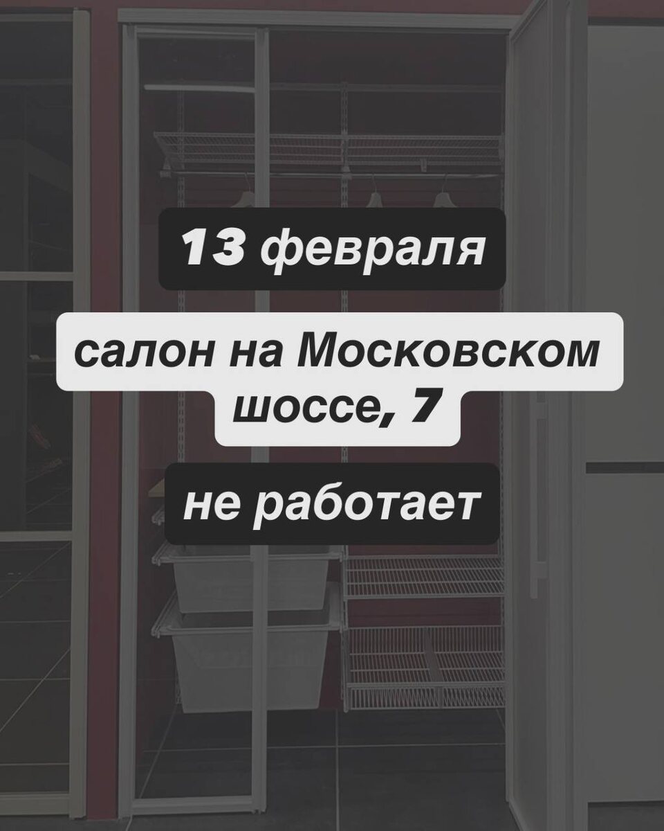 Друзья, салон на Московском шоссе 7 завтра, 13 февраля, не работает по техническим причинам
