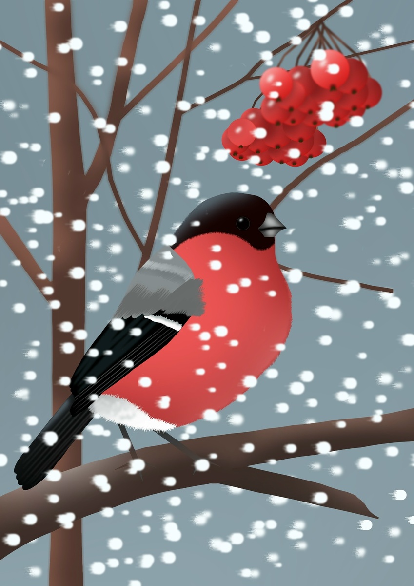 "Снегирь " Компьютерная графика (фотошоп). 2026 г.