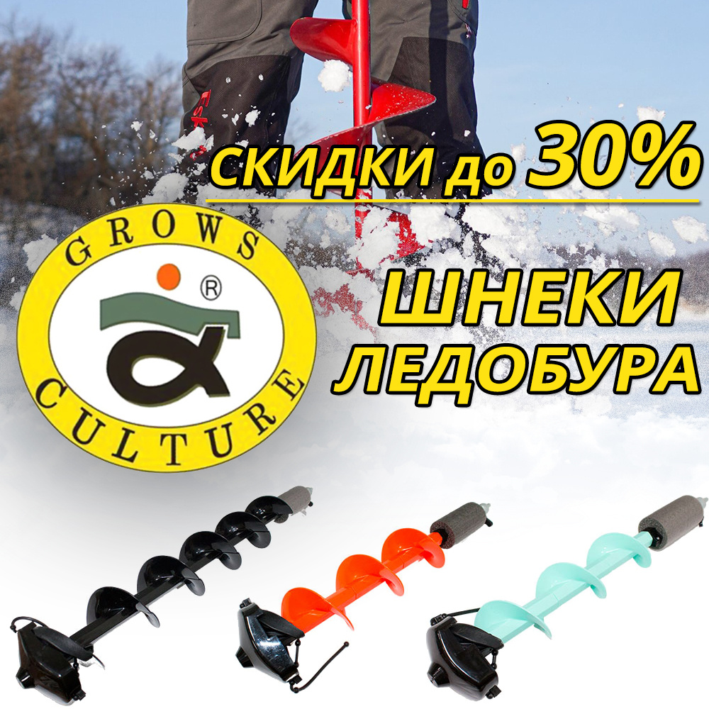 Уважаемые любители зимней рыбалки, у вас есть отличная возможность приобрести шнеки ледобура Grows Culture со скидкой до 30%! Шнек пластиковый Grows Сulture изготовлен из прочного композитного пластика, обеспечивающего не только легкость, но и высокую коррозионную стойкость в тяжелых зимних условиях. Шнек ледобура Grows Culture – это идеальный выбор для зимней рыбалки, предлагающий сочетание легкости, прочности и универсальности. Преимущества: - Легкость конструкции: Вес шнека составляет всего 1,1 - 1,45 кг, что делает его удобным в эксплуатации и транспортировке. - Модульная система: Позволяет легко регулировать количество витков шнека, адаптируясь под различные условия бурения. - Алюминиевый ствол: Шестигранный ствол сделан из конструкционного алюминиевого сплава, что гарантирует высокую прочность и долговечность. - Оптимальный диаметр бурения: 130 - 150 мм подходит для большинства популярных ледобуров, предоставляя широкий спектр применения. - Комплектация с двумя головами: Упрощает