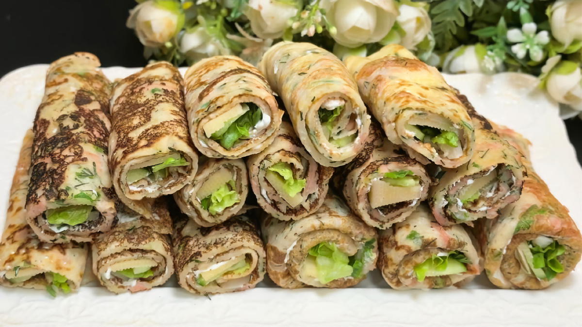 Тонкие блины делают рулет аккуратным и нежным.