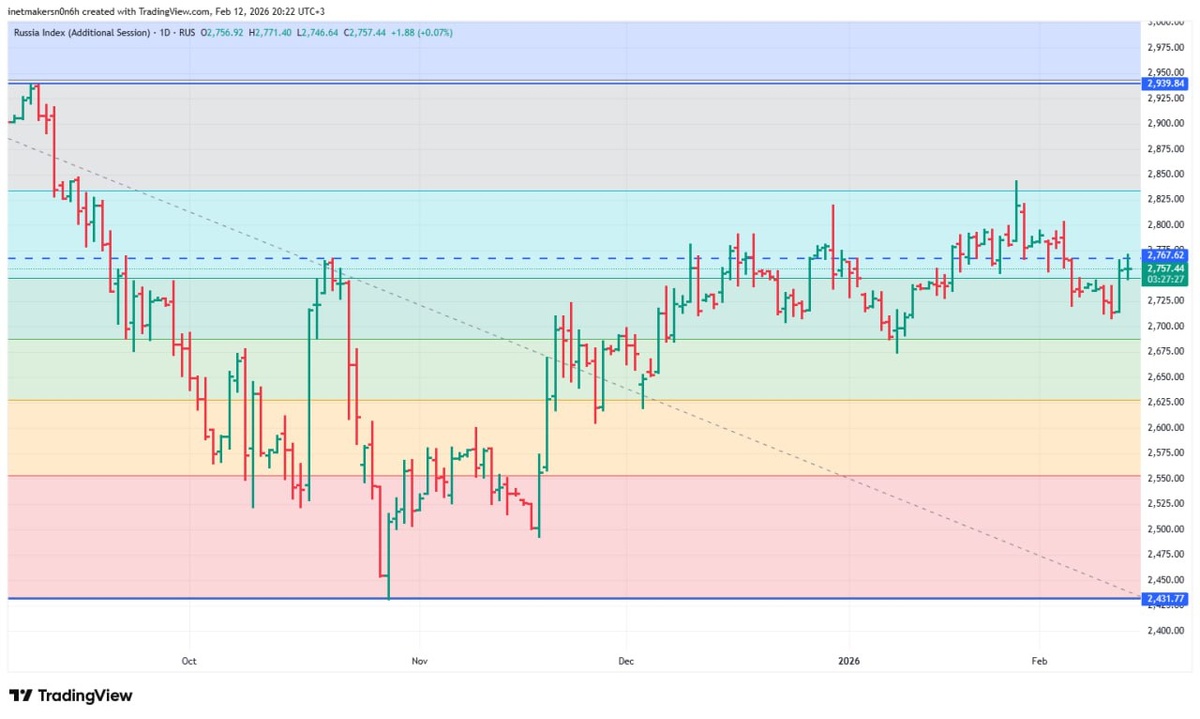 ❗️12 февраля российский фондовый рынок показал рост, индекс МосБиржи укрепился на 0,29% до уровня 2765,66