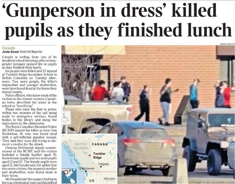 Убийца оказался трансгендером, но писать об этом считается неполиткорректным. Поэтому приходится придумывать заголовки, например: «Стрелок в платье убил учеников». А как же быть с самоидентификацией? Если признать, что человек был безумцем еще и в момент «перехода», то ЛГБТ-сообщество (признано экстремистским и запрещено в РФ) не одобрит. Вот такой парадокс для западных медиа. Подписывайся
