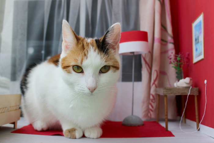 Возможно, эта фотография вам уже попадалась: Возможно, вы следили за моим творчеством, а заодно за моей любимой помощницей: Когда в октябре 2023 года мы забрали её с выставки приютских кошек, ей было примерно 4 месяца и звали её Фафи. Когда её вынули из клетки, она мигом пригрелась на руках моего мужа и замерла. Вот одна из первых фотографий, на которой наша мисс Пушистые Ботинки смотрит на птиц через огромные окна лоджии (и наверняка обалдевает от своего нового "телевизора"): Кличка "Фафи" быстро трансформировалась в "Вафлю" — имя забавное, произносить проще, да и кошка сразу стала на него откликаться. Бонусом, её кличка почему-то удивляла наших знакомых. Почти сразу, очень внезапно, у меня проявилась аллергия. Наложился бронхит и астма, я начала задыхаться по ночам. Дома из глаз постоянно текли слёзы, присоединился насморк. Сдала анализы, которые подтвердили аллергию на кошек. Врач, к которому я обратилась, прописала мне необходимое лечение и посоветовала отдать животное,пока не прив