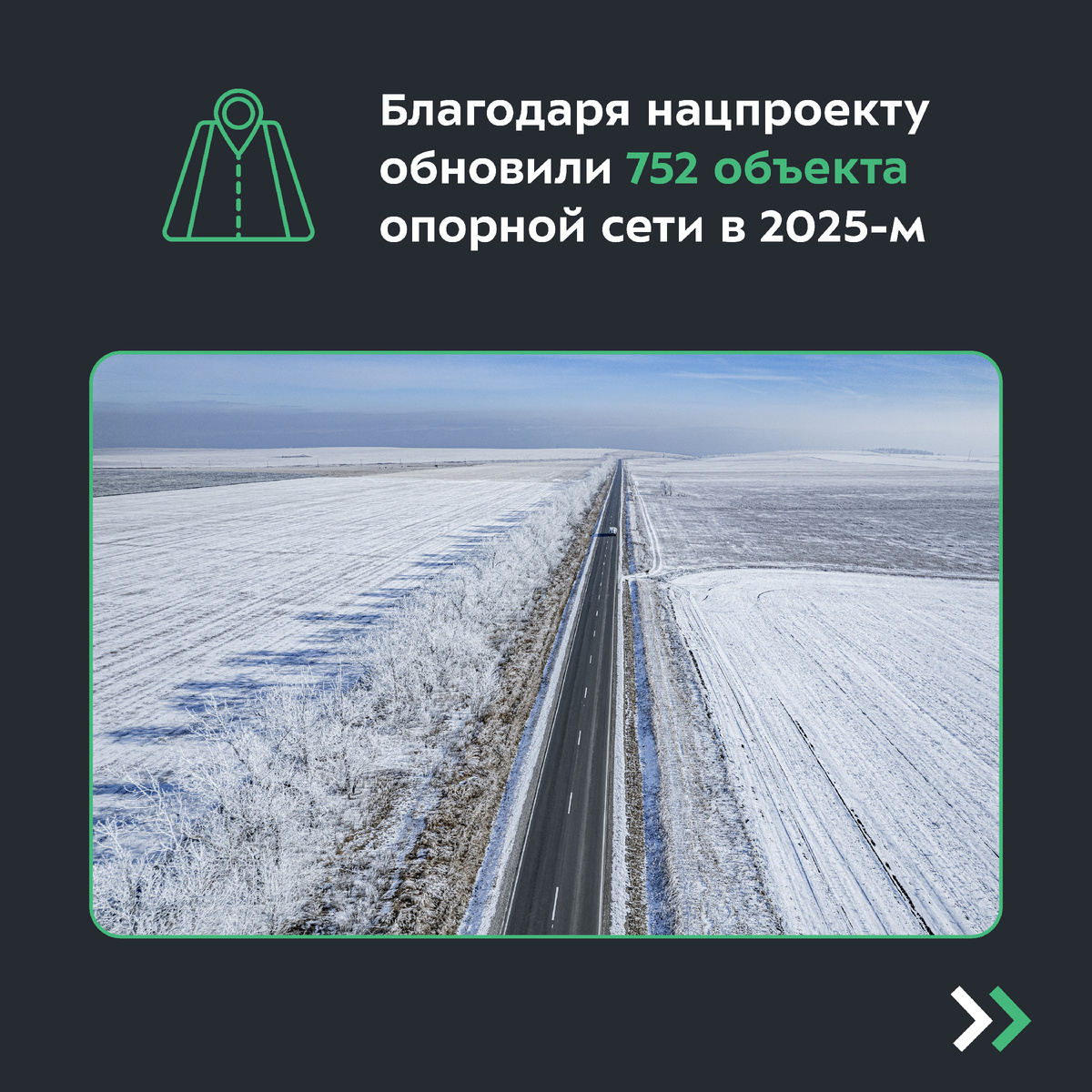 Работы прошли на 658 участках региональных и межмуниципальных дорог протяжённостью более 3 500 км, а также на 94 мостах общей длиной 6 400 пог. м. Они связывают столицы регионов с административными центрами муниципальных районов, ведут к крупным и промышленным городам, к границам соседних государств. Такие объекты формируют транспортный каркас, по которому движется основной грузо- и пассажиропоток. К концу 2025 года доля автодорог опорной сети РФ в нормативном состоянии достигла 75 % при плановом значении 70,5 % 💪 Отметим, к 2030-му показатель должен вырасти до 85 %. Подробнее об объектах прошедшего сезона — в наших карточках 👇🏻 Нацпроект в MAX 💚 #итоги2025 #Опорная_сеть