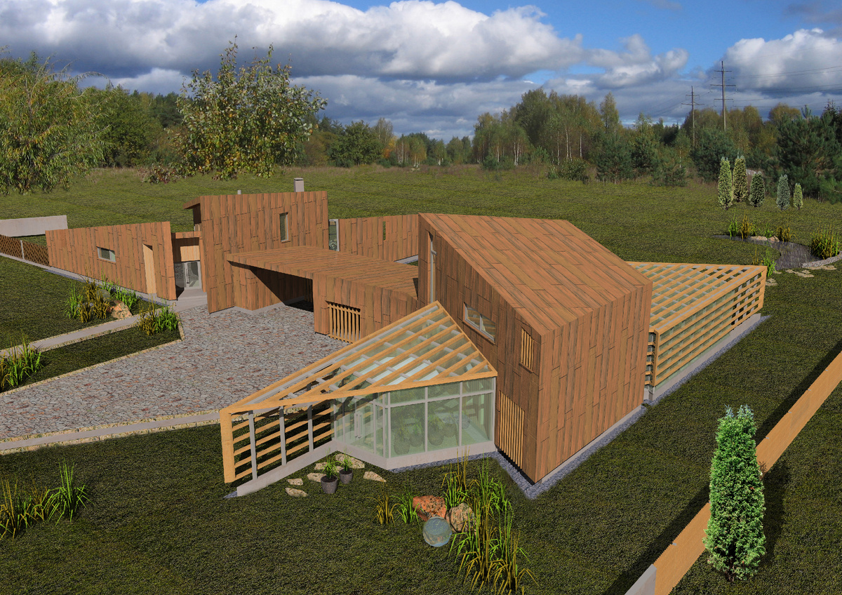 Оригинальность идеи в пространствах основанных на треугольнике и в интеграции оранжереи в одну из вилл (Совместно с Донатасом Чернецким)