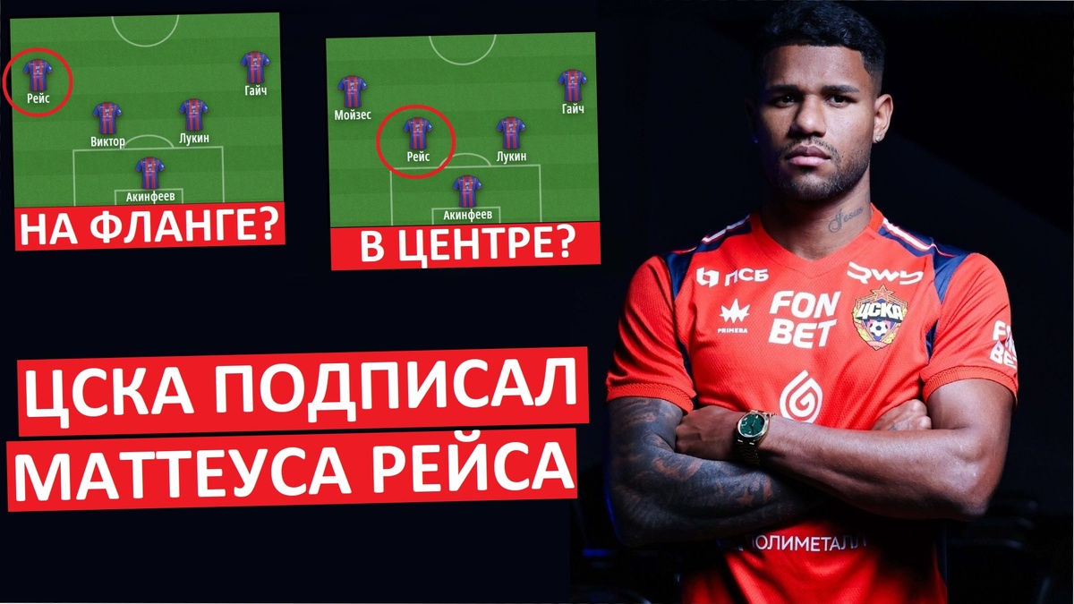 Московский ЦСКА официально объявил о подписании бразильского защитника Маттеуса Рейса. Игрок перешёл из лиссабонского "Спортинга" на правах свободного агента. И сейчас многие задаются вопросом - как поменяется оборона ЦСКА после подписания Рейса. Давайте разберёмся в этом вопросе и обсудим два основным варианта, использования бразильца. 1) Рейс на позиции центрального защитника. Собственно, это как раз то, ради чего Рейса и подписывали. Команда этой зимой отдала Дивеева, на котором очень много держалось в центре защиты. Это и исполнение "первого паса". И роль "опытного напарника" для молодого Лукина, который стал игроком основы при Челестини. В этих условиях, ЦСКА нужно было найти сильного, матёрого новичка в центр обороны. И сегодня такой футболист был подписан. При этом, Рейс может ещё и разнообразить игру команды. Дело в том, что бразилец - левоногий центральный защитник. Что добавляет вариантов при начале атаки и исполнении "первого паса". Для ЦСКА, как для команды, которая стара