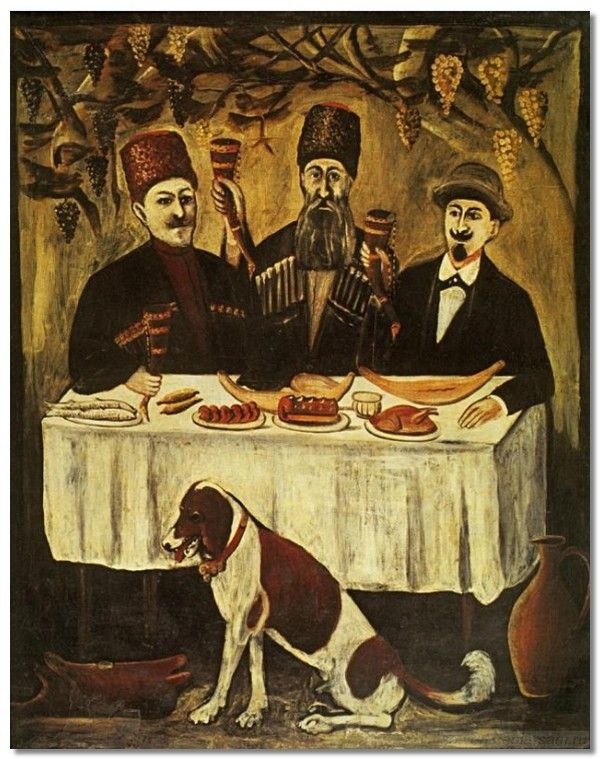 "Трапеза" Нико Пиросмани. ХХ век. Национальная галерея Грузии им. Шеварднадзе, Тбилиси История о том, как бедный художник продал все, что имел, и на эти деньги купил миллион алых роз для любимой, трогает сердца уже не один десяток лет. По легенде, этим влюбленным безумцем был грузинский художник Нико Пиросмани, потерявший голову от одного взгляда на красавицу-актрису Маргариту де Севр.