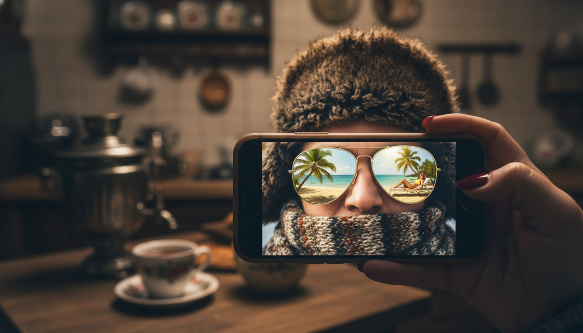 Сам Сергей был в зимней куртке. Но фон... Фон был странным. Слишком размытым, слишком идеальным. Как будто... фотообои? Или стена в тематическом ресторане? Или он просто сфотографировался на фоне плаката?