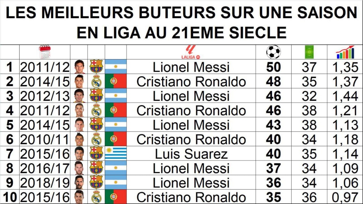 Наибольшее количество голов в LALIGA за один сезон 🇪🇸⚽️