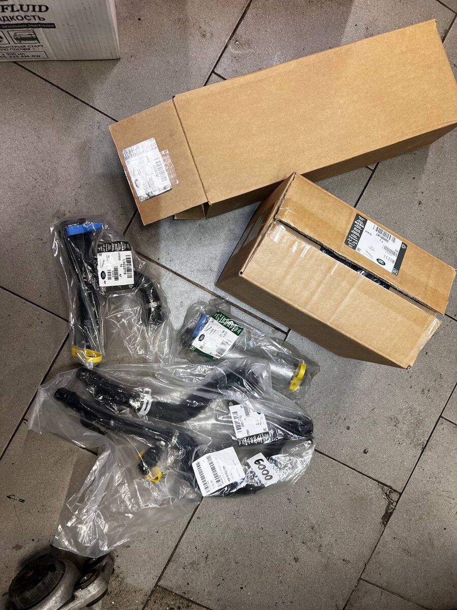 Вот так выглядит стандартный набор для обновления системы охлажения на Range Rover 4,4 на пробеге 150+ тыс км. Автомобиль приехал с сообщением о низком уровне антифриза. В результате осмотра первоначально выявили следы фриза на нижнем корпусе термостата и отводящем патрубке. Далее при разборе все сопутствующие элементы буквально разваливались в руках. Это происходит из за того, что пластик со временем деградирует от высокой температуры, поэтому правильным решением будет замена сразу всех элементов. Так же после разбора выяснили что термостат развалился уже внутри, что в целом ожидаемо на таком пробеге. Всем добра