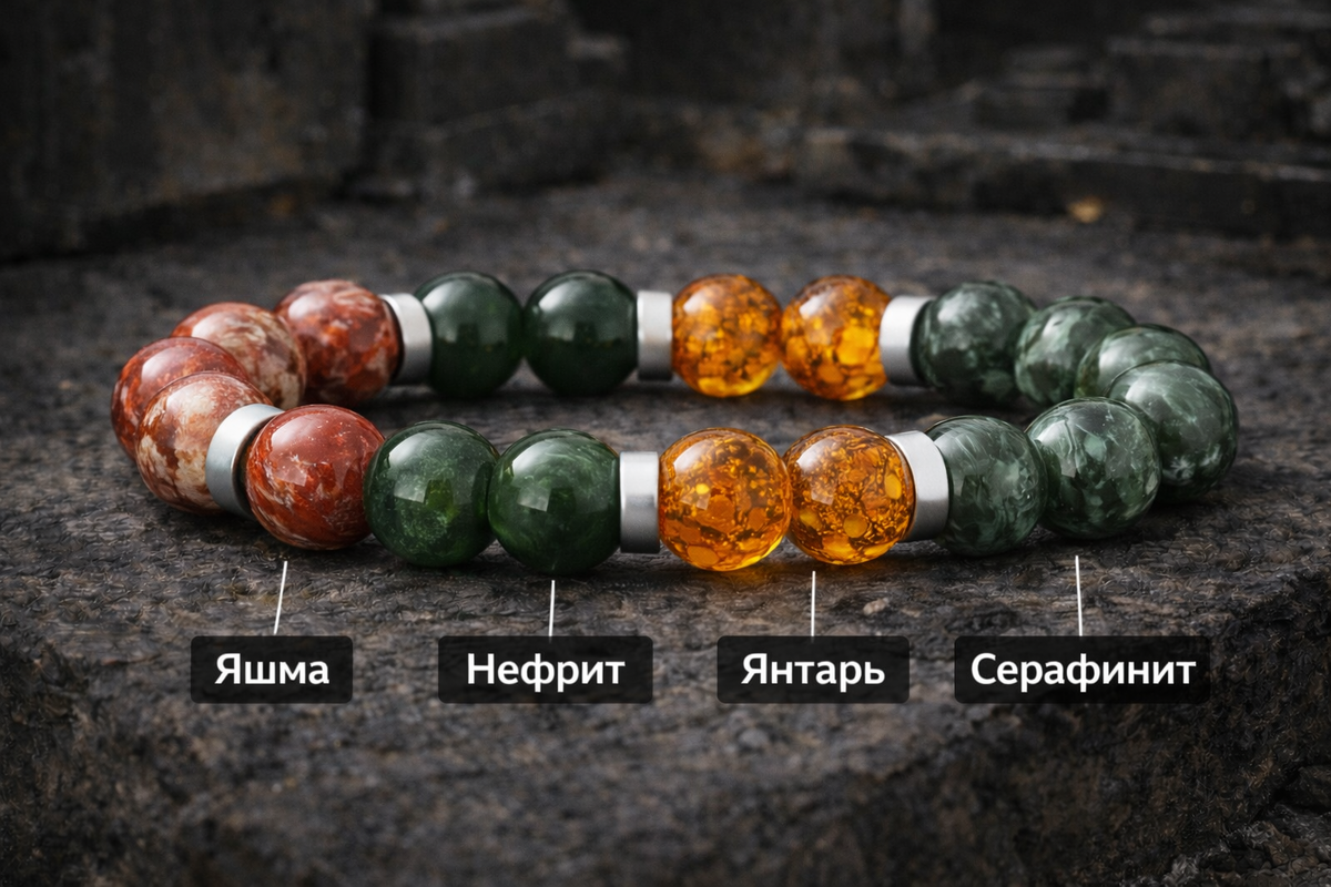 Ко мне пришла Наталья, Телец, предприниматель. Она рассказала, что последние полгода ощущает себя выжатым лимоном. К концу дня появляется такая тяжесть в теле, что руки и ноги становятся словно свинцовыми. Утром просыпается уже уставшей, а днём постоянно хочется спать. При этом спит нормально, но восстановления не происходит. Наталья заметила интересный паттерн: когда напряжение накапливается, она начинает переедать по вечерам, словно организм ищет энергию через еду. Стресс буквально зажимает её тело. Попыталась пить кофе, но эффект длился два часа, потом ещё большее падение. Уже начала принимать витамины, но поняла: нужно что-то другое. Я предложил Наталье браслет "Энергия и здоровье", который подходит Тельцам, когда тонус падает. В нём четыре камня: яшма, нефрит, янтарь, серафинит. Каждый камень работает по-своему, чтобы укрепить тело и вернуть ресурс мягко, без резких подъёмов. Меня зовут Николай Черненко, Я — основатель магазина камней "Nikos Stone - Камни и минералы" и школы мин
