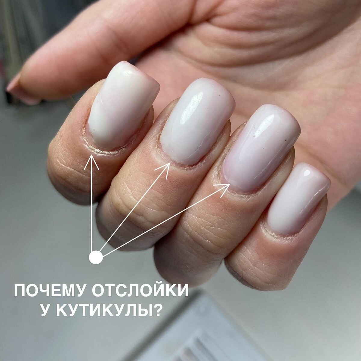 Теперь про отслойки. Парадокс, но толстый слой держится хуже. Почему? Потому что гель полимеризуется неравномерно. Верх уже твёрдый, а внутри ещё идёт реакция. Возникает внутреннее напряжение. Материал буквально тянет сам себя. Плюс — естественная гибкость ногтя. Он двигается, а тяжёлая «плита» сверху — нет. Итог? Микротрещины у кутикулы, отслойка по бокам, карманы воздуха. А вы думаете — «наверное, плохо носила».