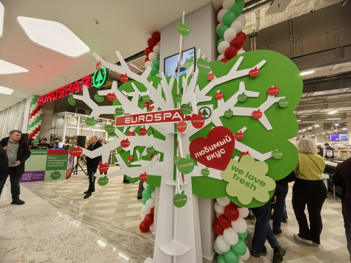 ООО «Спар Миддл Волга» (входит в группу «Сладкая жизнь») увеличила сеть Spar и Eurospar до 133 супермаркетов. Компания открыла 49-й магазин в Москве и реализовала в нем лучшие торговые технологии. Супермаркет первым в российском ритейле получил знак соответствия принципам пищевой безопасности (ХАССП) среди торговых сетей. Фото: Марова Н./Retail.ru Новый супермаркет Eurospar компании «Спар Миддл Волга» открылся в столичном ТЦ «Авеню-Север» в районе транспортно-пересадочного узла «Селигерская». Локация выстроена вокруг трафика метро и жилых кварталов севера Москвы. Общая площадь магазина — 3 600 кв. м., торговый зал — 2 000 кв. м., он стал крупнейшим в сети. Новый супермаркет также стал флагманским по реализованным инновациям: в торговом зале применены обновленная айдентика и дизайн, покупателям предлагается свежесваренный кофе от бариста, также есть специальные зоны с бельгийскими вафлями и блинами. Пространство оборудовано более чем 30-ю цифровыми экранами, а полки — электронными ценни
