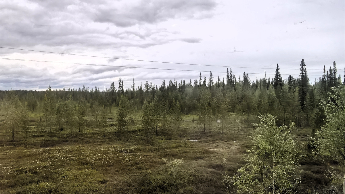 Путь из Печоры на протяжении трёх с небольшим часов сопровождался умиротворяющими видами густого таёжного леса. По мере приближения к Усинску они плавно сменились четырёхцветным пейзажем северного лета с преобладанием зелёного, жёлтого, коричневого и серого цветов.