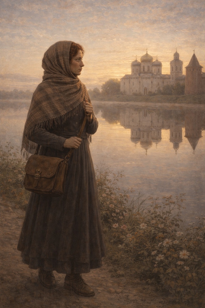 Будто стоит она на паперти Софийского собора, и над Ильменём разгорается та самая малиновая, золотая заря. И рядом с ней стоит он — живой, тёплый, настоящий. Берёт её руку в свои, подносит к губам и говорит: