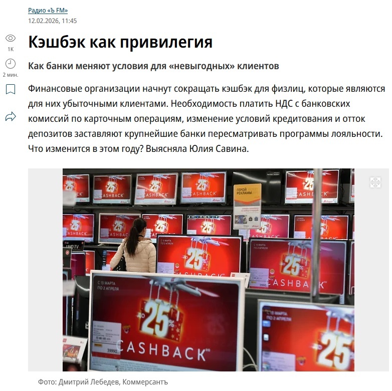 Достаточно интересную статью опубликовало издательство Коммерсантъ. Оно говорит о том, что сейчас прибыль банков будет падать, а значит она начнут сокращать свой расходы, а в первую очередь кэшбэк. По одним из расчетов размер выплат в 2025 году составил 500 миллиардов рублей, поэтому тут есть что резать. Издательство считает, что банки поделят клиентов на выгодных и невыгодных. Собственно банку ничего не стоит посчитать сколько он заработал на каждом клиенте, а красный банк это считал еще 14 лет назад, это я точно знаю. А далее поняв сколько банк на каком клиенте заработал, он сможет проранжировать их и выбрать из них тех, с кем ему выгодно работать, а с кем нет. И далее тем, кто приносит больше выгоды будет предлагаться больше интересных предложений, чтобы эти клиенты были привязаны к банку и никуда не уходили. Те же, кто не приносит прибыли, будут получать худшие категории кэшбэка на выбор и минимальное число специальных предложений. Это все звучит очень логично. И кстати! Я совсем