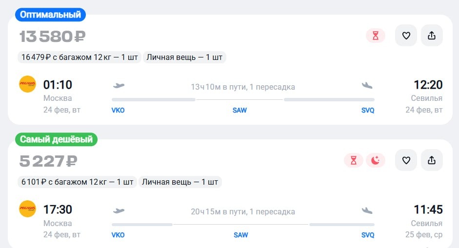 Такой вариант предлагает Pegasus со стыковкой в стамбульском аэропорту Сабиха Гёкчен. Обратный есть за 9 тыс. Вот так и получится собрать бюджетный round trip, но только тем, у кого уже есть на руках шенген – такие цены замечены в феврале-марте. Чуть дороже, но тоже вполне неплохой прайс есть на другие европейские страны. В том числе не только из Москвы, но и из Питера. Подробнее написали на ТурДоме. @tourdom