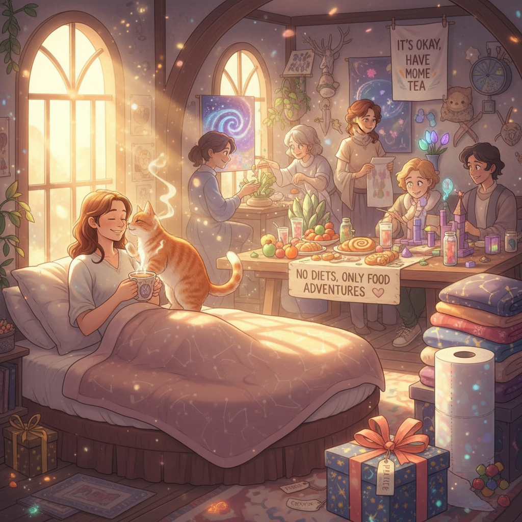 Согласно последнему исследованию Международного Института Уютности и Вменяемости, она включает ВСЁ, о чём ты даже сам себе не признавался. — Ты просыпаешься от приятных звуков (не будильник, а кот семейно шепчет: «Ты выспался, солнце»)