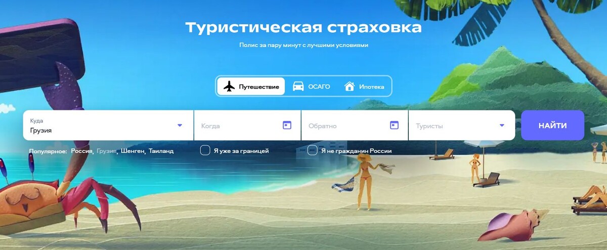 Уже официально с 1 января 2026 года для въезда в Грузию россиянам требуется медицинская страховка. Путешественнику без страховки могут отказать при пересечении границы или выписать штраф, если отсутствие страховки обнаружится во время пребывания в стране 2. Минимальная страховая сумма: 3. Страховка должна предусматривать медицинскую эвакуацию в страну проживания. В целом, ничего нового и специфического в требованиях нет. Оформить страховку можно у страхового агента в офисе, купить на сайте страховой компании или через специальные сервисы - онлайн-агрегаторы. Последний вариант хорош тем, что можно сразу оценить стоимость страховки от разных страховых компаний с учетом дополнительных опций. Обычно я проверяю стоимость полисов через онлайн сервис сравни.ру, но покупаю чаще через cherehapa, просто потому что дешевле и привычней. Порядок действий на сайте: На сайте автоматом выставляется страховая сумма 50 000 долларов. Ее можно изменить на 30 000 долларов в левой колонке. Таким образом