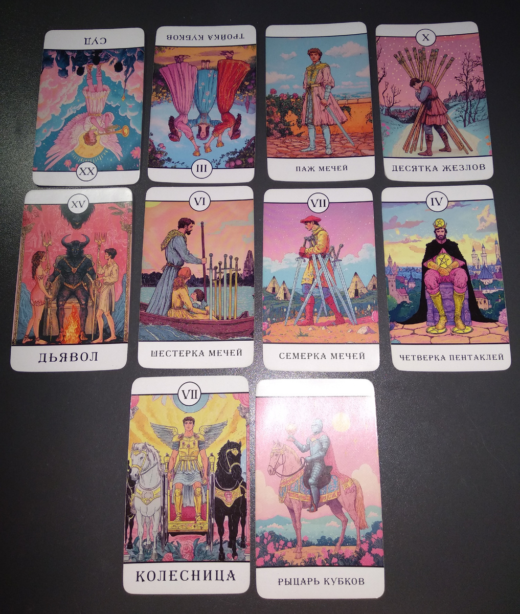 Несмотря на внутреннюю тяжесть, он планирует проявляться. Он хочет сменить обстановку или перевести отношения в другое русло. Это карты движения, возможен приезд или предложение «уйти от проблем» вместе. Он придет с красивыми словами, цветами или романтическим жестом.
