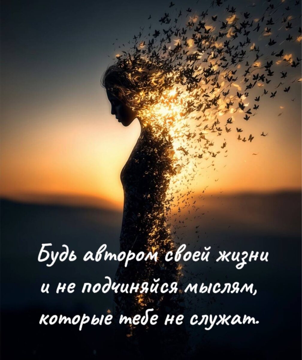 ? Почему держитесь за них вместо того, чтобы отпустить? Я отвечу: за эти мысли держится ваша идентичность. «Я - тот, кто всегда тревожится». «Я - та, которая страдает». «Я - человек, которому нужно всё контролировать». Без этих мыслей вы как будто исчезаете. Поэтому вы их охраняете и защищаете. Знаете, вчера на сессии с клиенткой мы как раз обнаружили этот момент. За этой мыслью - не просто убеждение. За ней - привычное состояние, знакомое каждой клеточке тела. Целый образ себя, который когда-то помог выжить, а теперь держит в клетке. Мы не вырываем эти мысли с корнем. Мы учимся их замечать и постепенно, через наблюдение, появляется пространство. А в нём - возможность выбрать, кем быть дальше, какой новой идентичностью вы хотите быть. Следующий пост я посвящу истории этой клиентки. Расскажу: - какой она была прежде, - кем она выбрала быть вместо этого - и какой она стала Это будет история про женщину, которая перестала жить в постоянной тревоге и стремлении быть удобной и ра