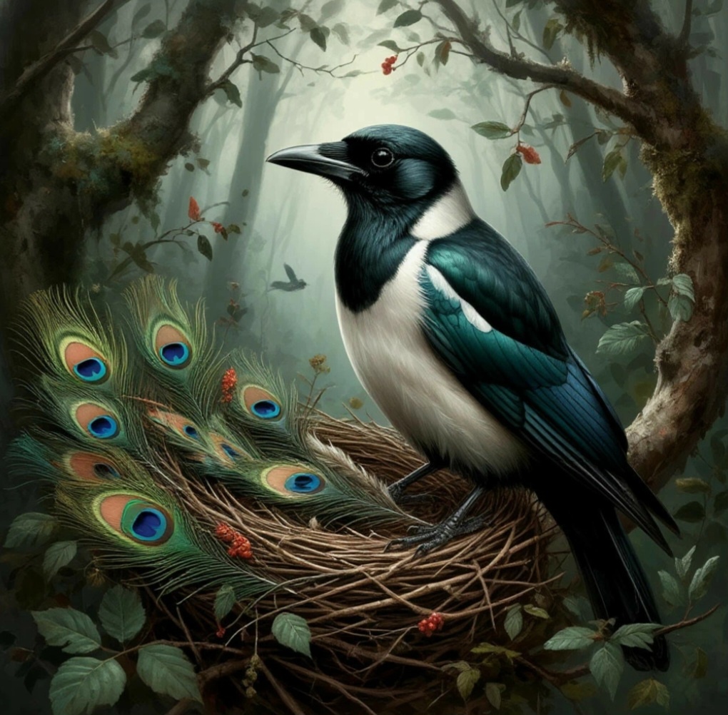 Она летала по лесу и собирала не блестящее. Она собирала чужие достоинства. И складывала их в своё гнездо, пока оно не рухнуло под тяжестью чужого добра.