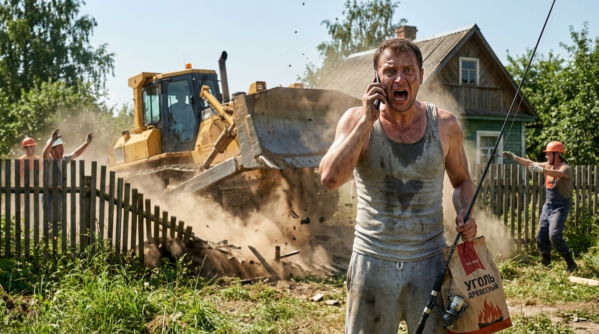 — Какие-то мужики! Говорят, что они хозяева! Говорят, снос будет! Маша, звони в полицию! Это рейдерский захват! Они мою рассаду топчут! Они мангал перевернули!