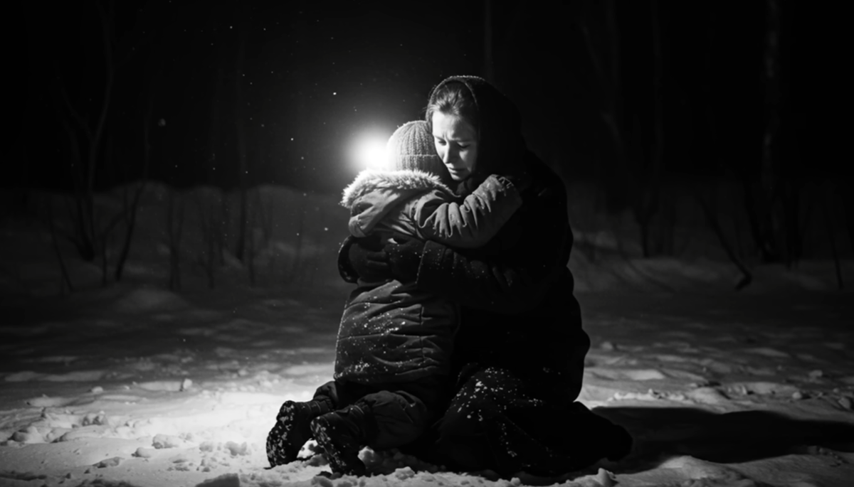 Рихтер лениво повёл рукой. Двое солдат вытолкнули вперёд Анну с Катюшей. Анна медленно опустилась на колени прямо в снег, обняла дочь, прижала к себе, зашептала что-то в макушку, целуя в светлые, мягкие волосы. Она не плакала. Она смотрела прямо перед собой, в темноту, и Алексей вдруг понял с пронзительной ясностью: она ищет его. Она знает, что он где-то здесь. Прощается.