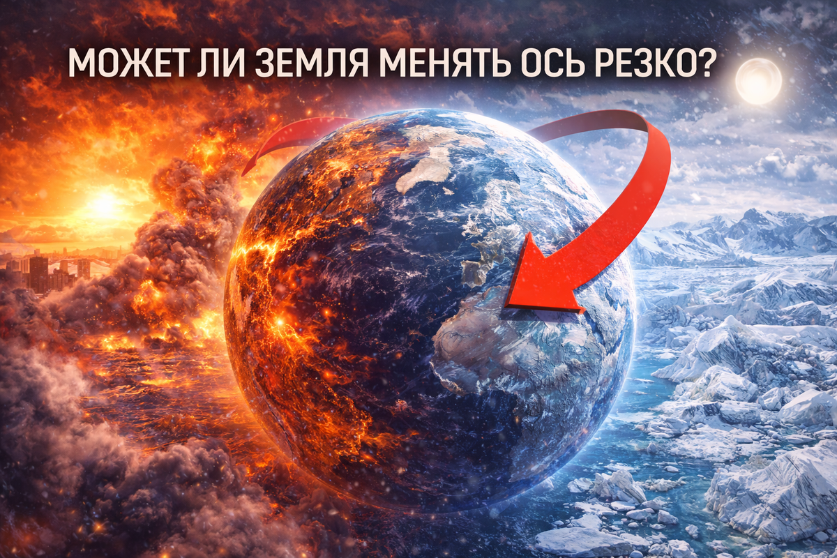 Когда в новостях появляется фраза «Земля сместила ось», у многих возникает тревога. Представляется мгновенный наклон планеты, катастрофические наводнения и новый ледниковый период. Но что на самом деле происходит с осью вращения Земли - и может ли она измениться резко? Разберем это без фантастики. Только физика, геология и данные наблюдений. Ось вращения - это воображаемая линия, вокруг которой вращается планета. Она наклонена примерно на 23,4 градуса относительно плоскости орбиты. Именно этот наклон дает нам смену времен года. Важно понимать - ось не закреплена жестко. Земля - не идеально твердый шар. Она состоит из коры, мантии, жидкого внешнего ядра и твердого внутреннего ядра. Вся эта система постоянно движется. Но «движется» - не значит «переворачивается». Существуют несколько типов изменений оси: Все это зафиксировано спутниками и геодезическими измерениями. Но эти процессы плавные. Они не происходят за дни или месяцы. Резкое изменение оси возможно только при колоссальном перерас