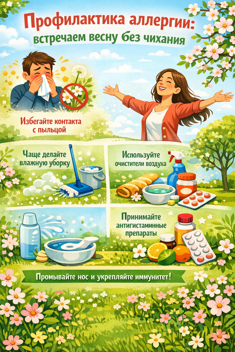 Поэтому профилактика аллергии начинается до сезона цветения, а не в разгар. 💬 Если каждый март для тебя “сюрприз”, ставь лайк ❤️ — пора менять стратегию. Первое, что можно сделать уже сейчас: Чем меньше аллергенов в доме, тем легче организм переносит весну. 💬 Кто уже делал весеннюю уборку? Напишите, что оказалось самым пыльным местом 😄 Аллергены в доме чаще всего накапливаются: Регулярная стирка постельного белья и проветривание снижают нагрузку на иммунитет. 💬 У тебя есть ковры дома или уже перешёл на минимализм? Делись опытом 👇 Если диагноз уже есть, важно: