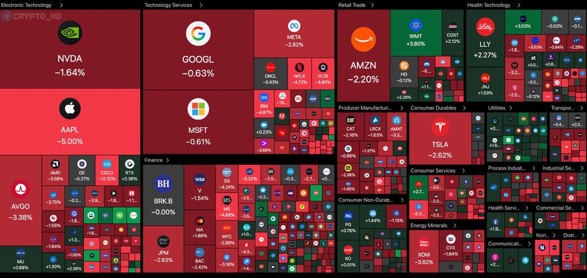 📉 Фондовый рынок США сегодня потерял $1,000,000,000,000…
