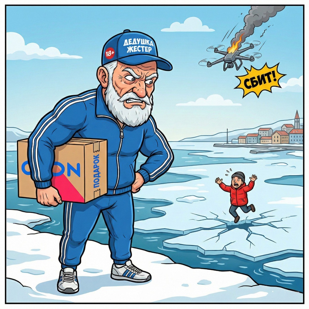 ⚡️ ПОДАРКИ, БОПОЛАШКИ И БЕЗУМИЕ НА ЛЬДУ ⚡️🌊 ✅ Весеннее обострение в феврале. Ребяточки, всем привет! 12 февраля 2026 года — на улице +6, всё потекло, снег превратился в воду. Дед вырвался из семантического ядра, от которого уже глаза болят, чтобы забрать жене подарок на Озоне к 13-му числу. Заодно решил прогуляться к морю, где снежные барханы и торосы тают на глазах. ✅ Тревожное небо. Спокойно погулять не дают — в небе жужжат «бополашки» (беспилотники). Дед слышит их каждый день, а сегодня даже видел, как один сбили — горит, пожар. Обстановка напряженная, но нас так просто не возьмешь! ✅ Премия Дарвина на льду. На море — настоящий цирк. Какой-то персонаж в «красной курточке» прыгает по тающему льду. Дед в шоке: лед хрупкий, всё течет, а люди лезут в самую воду. «Ебанько», — резюмирует Дед. Спасать таких — себе дороже, но предупредить стоило. ✅ О «выслуживающихся» органах. Вспоминая работу и суды, Дед прошелся по приставам и «силовикам». Мысль простая: многие из тех, над кем издева